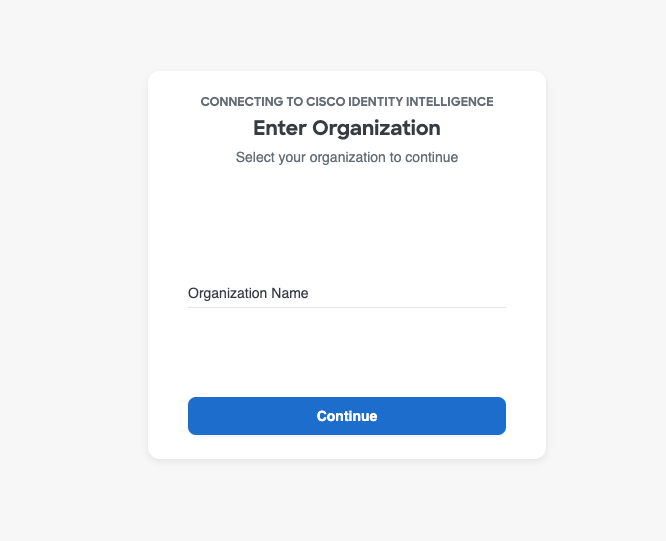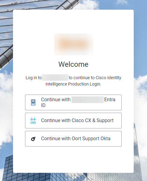 4. Select your enterprise SSO login option and continue with the login process for it. You will be redirected to the Dashboard page when complete. **Note** - Cisco Identity does not provide a local username and password login option.