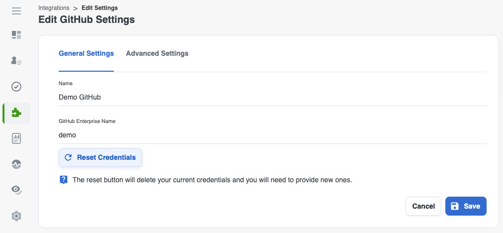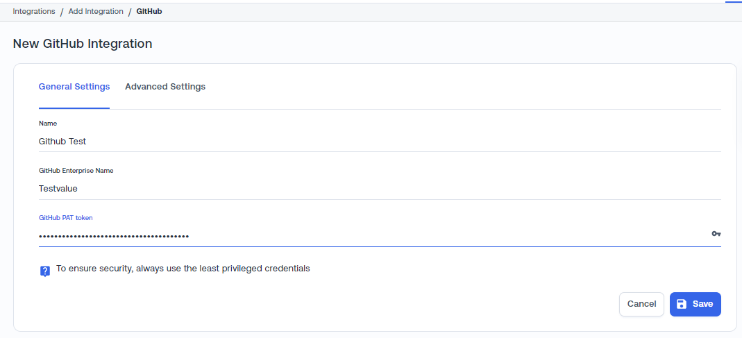 4. Go back to the **Integrations** page, click the 3-dot menu for the Github Integration and select **Test Connectivity** to ensure a successful connection