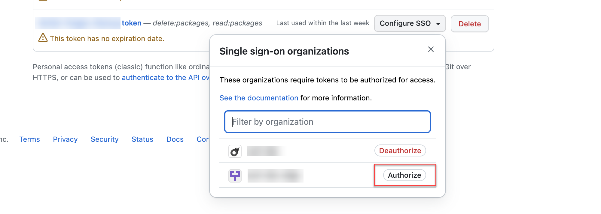 5. Authorize SSO for the PAT to the desired orgs&#x20;