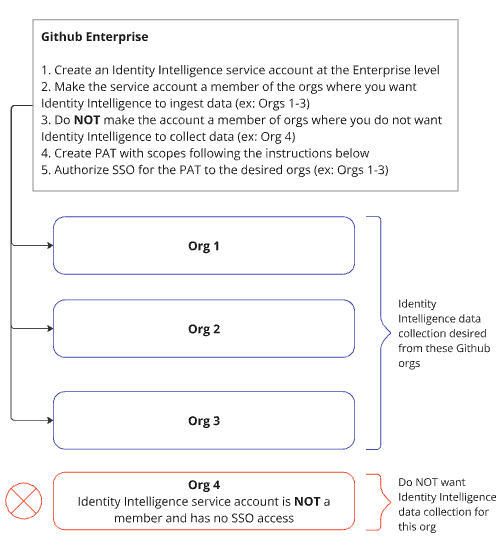 Identity Intelligence has chosen to connect to Github environments at the Enterprise level rather than per Organization. This allows for the use of one API token for an entire customer environment, instead of an API token being required for each Org. &#x20;