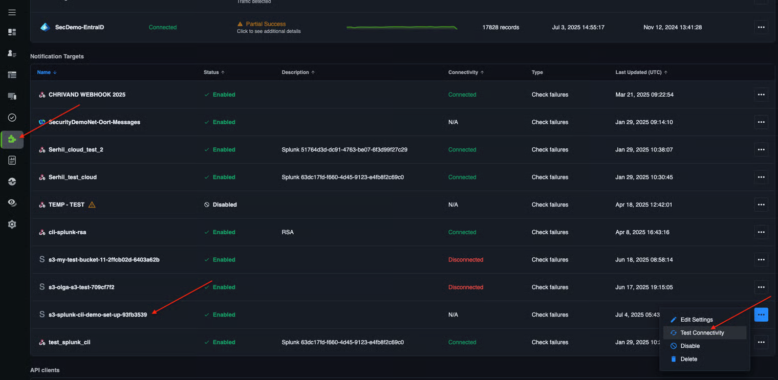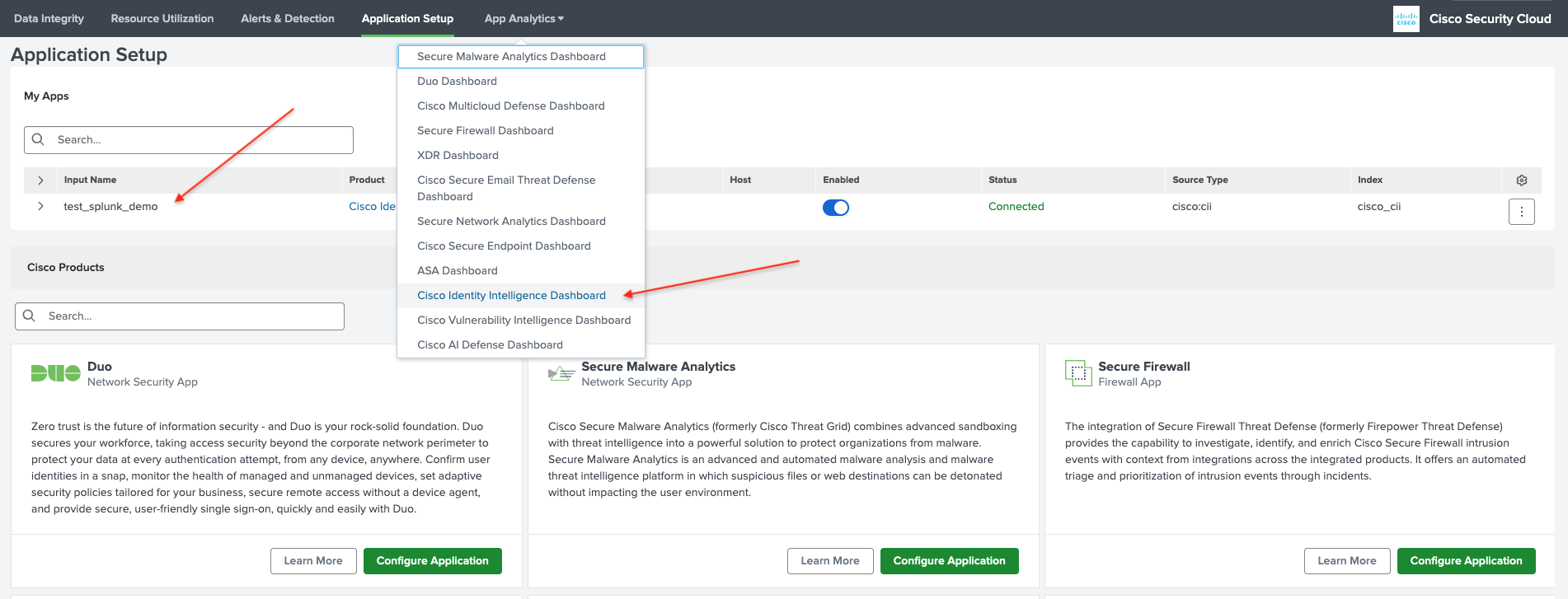 ## Test Connectivity Between Splunk and Cisco Identity Intelligence