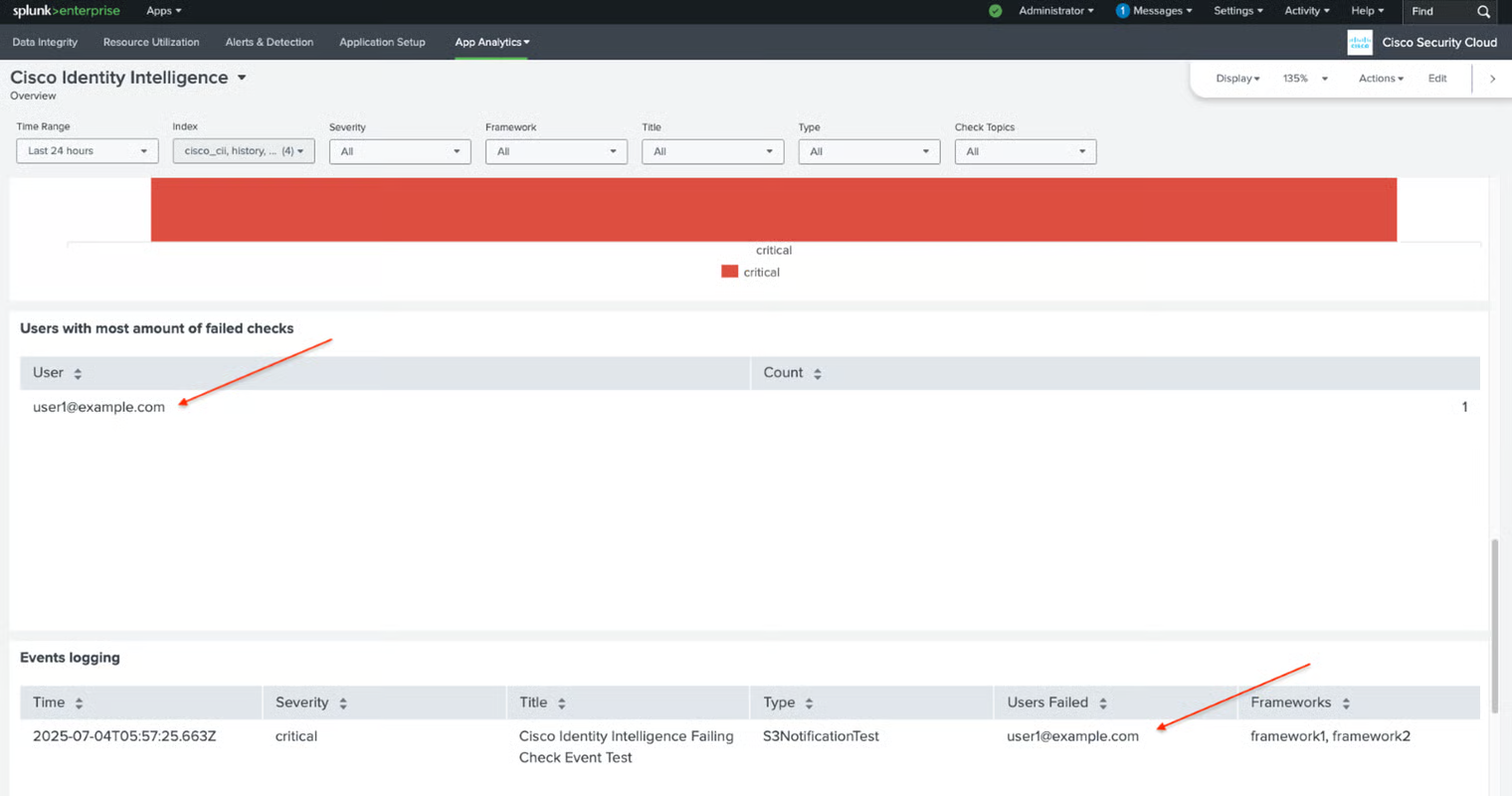 As organizations face growing complexity in identity management, Cisco Identity Intelligence provides a centralized platform to detect, monitor, and gain actionable insights into identity-based threats. By correlating identity data and leveraging AI-powered Identity Threat Detection and Response (ITDR) and Security Posture Management, it offers deep visibility into user behaviors and risks, enabling security teams to mitigate threats proactively. To channel these critical insights directly into your security operations workflow, the Cisco Security Cloud application for Splunk offers a seamless integration engineered for reliability and actionability. It provides comprehensive event logging with assigned severity levels to help teams prioritize efforts, and crucially, it pinpoints the specific user information for each failed security check, delivering the granular, context-rich data needed to maintain operational integrity and accelerate response.