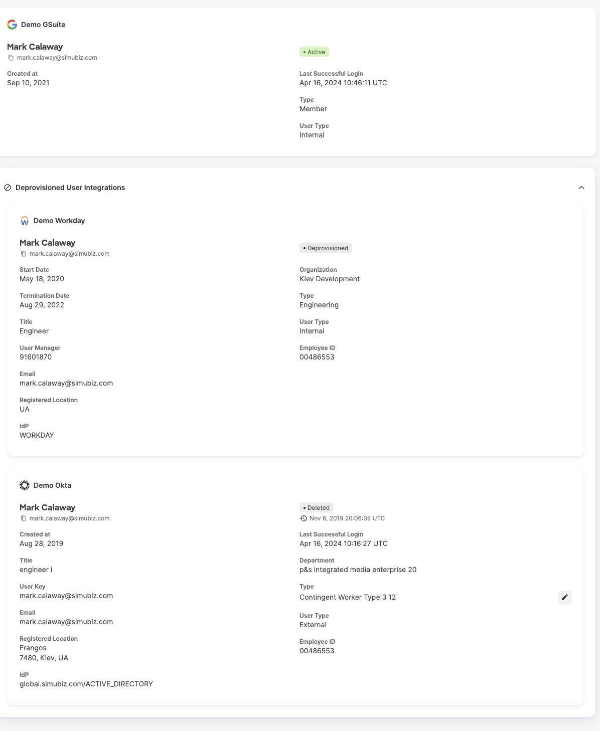 We are continually working to enhance the user experience on the User360 profile by ensuring all pertinent information is readily available. In this release, we are introducing an updated approach to displaying ‘Active’ versus ‘Deprovisioned’ user integrations.  ‘Active’ user integrations now appear at the top, followed by ‘Deprovisioned’ user integrations displayed collapsed at the bottom. This encompasses user integrations with the statuses such as deleted and deprovisioned. This update offers a cleaner and more organized presentation of integrations, preventing clutter on the User360 profile.&#x20;